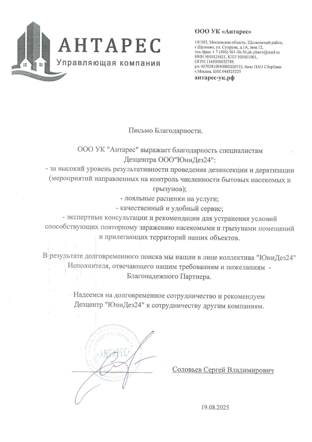 на ознакомление Вам представим еще больше отзывов наших Заказчиков - Мы имеем обширный опыт, прикладываем все необходимые усилия для достижения положительного результата и соответствия деятельности предприятий требованиям Аудиторов и Роспотребнадзора в части борьбы с членистоногими, грызунами, птицами, патогенной флорой и др.