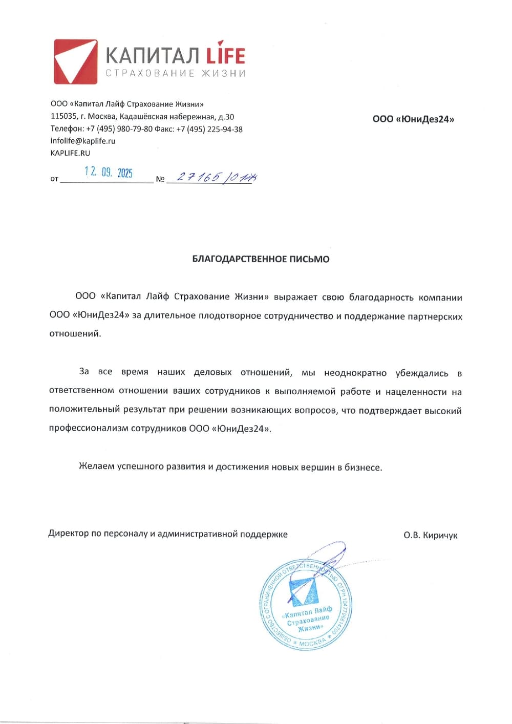 Начальник договорного отдела: